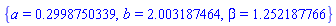 Unfortunately, it fails to find any other solution. There is a second solution, found by solving the middle equation for a, and so eliminating a from the first and third equations. This leads to two equations of the form , whose graph reveals that there are two intersections of the two implicit functions so defined. The second solution is then found to be