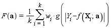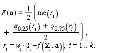 Least function of absolute deviations method. Robustness of this method depends on the function specified (by default, ).