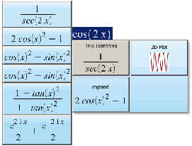 There are three double-angle identities for and the Smart Popup in Figure 30.1 contains two of them, with one of them repeated. This doubling of one identity and the omission of the third is endemic to the table of trig identities in