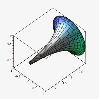 plot3d([x, y*cos(phi), y*sin(phi)], theta=Pi/2..3*Pi/2, phi=0..2*Pi, scaling=constrained);