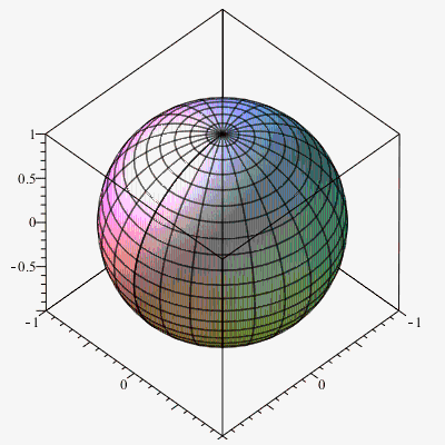 x := R*sin(theta)*cos(phi); y := R*sin(theta)*sin(phi); z := R*cos(theta);