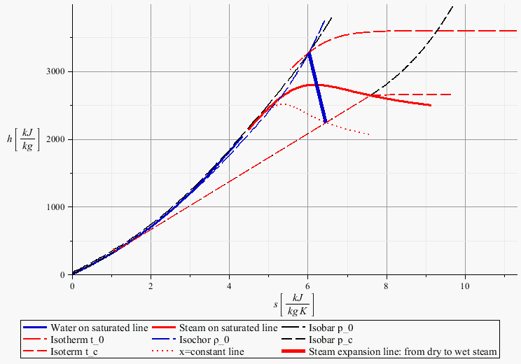 Steam expansion in the turbine on the h-s (Mollier) chart