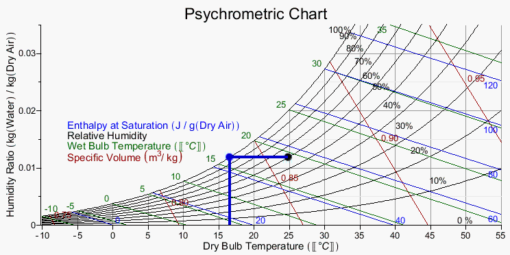 We can now plot the point on the psychometric chart.