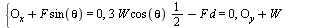 a) Find the symbolic relationship for the reaction forces at O and P in terms of the distance, d, the weight of the beam, W, and the angle .