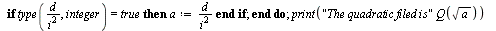 We give a procedure QuadraticField for writing the quadratic field for any integer (not necessarily square-free).