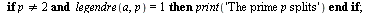 Any prime number p gives rise to an ideal in the ring of integers of a quadratic field K. In line with general theory of splitting of prime ideals in Galois extensions, this may be:p is inert :(p) is a prime ideal; the quotient ring is the finite field with elements: /p =. p splits :(p) is a product of two distinct prime ideals of ; the quotient ring is the product /p =. p is ramified :(p) is the square of a prime ideal of ; the quotient ring contains non-zero nilpotent elements. The third case happens if and only if p divides the discriminant D. The first and second cases occur when the Kronecker symbol equals -1 and +1, respectively. The first two cases are in a certain sense equally likely to occur as p runs through the primes, see Chebotarev density theorem.The law of quadratic reciprocity implies that the splitting behaviour of a prime p in a quadratic field depends only on p modulo D, where D is the field discriminant.