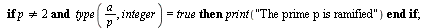 Input data are d (not necessarily square-free) a positive integer number which defines and p a prime number.