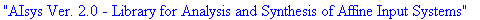 The AIsys package contains several algorithms for the analysis and synthesis of nonlinear Affine-Input control systems, or AI-systems for short. This class of systems describes a large number of physical systems in many engineering applications. However, only the increasing availability of low cost digital signal processors in combination with the increasing power of computer algebra programs like Maple enable the practical use of these nonlinear control strategies.