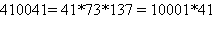 410041= 41*73*137 = 10001*41
