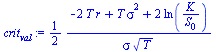 Determine the critical value for which the stock's terminal value is equal to the strike price K: S[T] = K