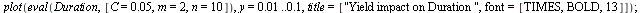 Maple's powerful symbolic engine returns the desired formula and is capable of finding any desired comparative static of this instrument. We can differentiate the CMT formula to obtain the first and second derivative of the CMT price w.r.t to yield: