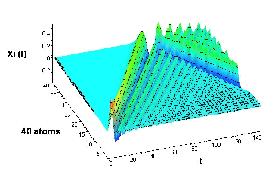 Waves propagation in chain of atoms