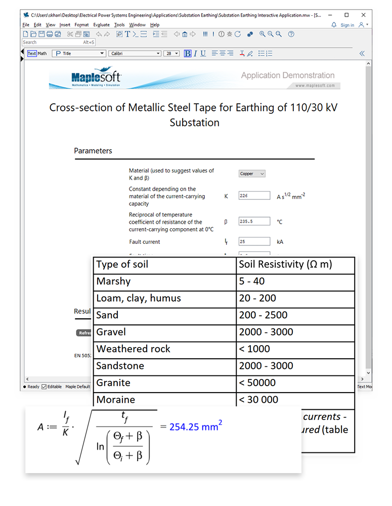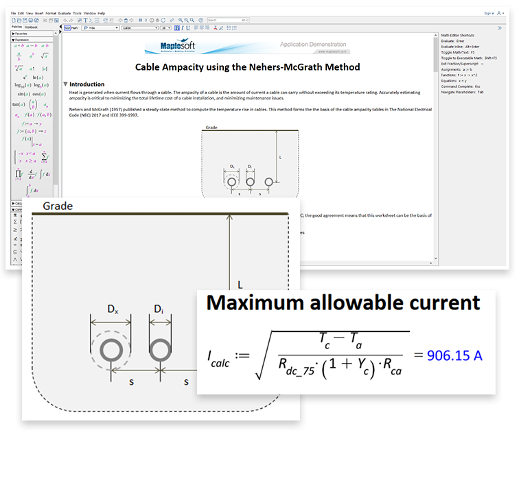 Utilisant Maple, l'application suit les normes EN 50522:2010 et IEC 60287-3-1, et présente une notation mathématique naturelle et des unités tout au long des calculs.
