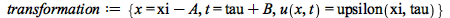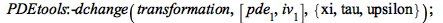 and then changing the variables back to the original {x, t, u} and giving the solution. The process all in one go: