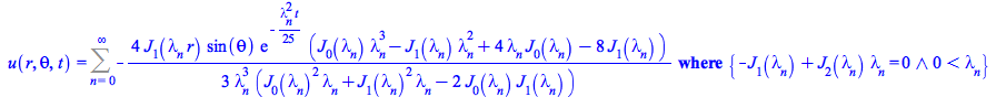 Example 8: This problem represents the temperature distribution in a thin circular plate whose lateral surfaces are insulated (Articolo example 6.9.2):