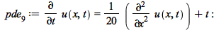 Example 22: For this wave PDE with a source term, pdsolve used to return a solution with uncomputed integrals: