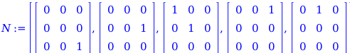 We use the LieAlgebraData command to calculate the commutation relations for the Lie algebra of matrices N.