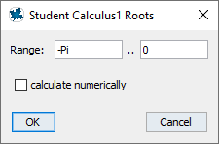 Context Panel: Student Calculus1≻Solve≻Find Roots See Roots dialog in Figure 7.2.8(b)