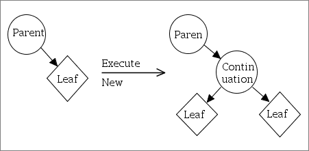 If executing the leaf task creates new children, then the leaf task is replaced by the continuation task, and the continuation task becomes the parent of the new children.  The continuation tasks form the internal nodes of the dependency tree.