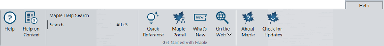 The Help tab  serves as the main resource for support and information regarding Maple. This tab encompasses a variety of tools, including access to the help database, contextual help, a search field for locating specific help pages, details regarding the software version, updates on recent releases, and links to valuable resources.