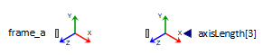 If the check box use input signals is selected, during an animation, the height of the three arrows (aligned with the local coordinate frame) changes to represent the instantaneous magnitude of the 3-vector input signal. When use input signals is unchecked, the size of all of the arrows is defined by a single length parameter L.
