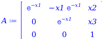 A := Matrix([[exp(-x1), -x1*exp(-x1), x2], [0, exp(-x1), x3], [0, 0, 1]]);