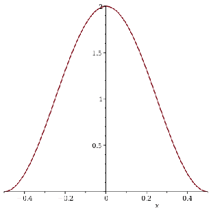 Exploreplot2sinnπx+nπ22&comma;x&equals;0.5..0.5&comma;numpoints&equals;500&comma;labels&equals;x&comma;&comma;parameters=n=1..100&comma;initialvalues=n=1.00000000&semi;