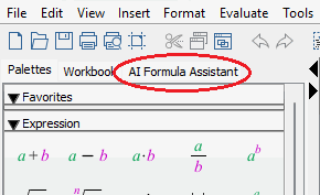 AI Formula Assistant is found on the left side of the Maple window. Click the AI Formula Assistant tab to activate that pane.