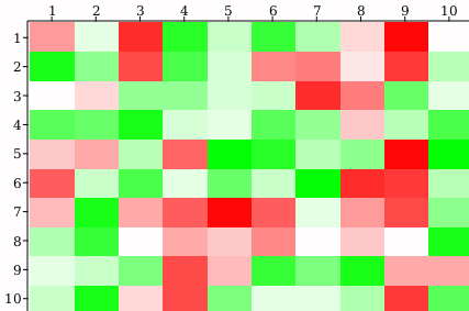 The option range indicates that the data is to interpreted as being in a specified range and also controls whether the mapping from value to color is applied to each column independently or to the data as a whole.