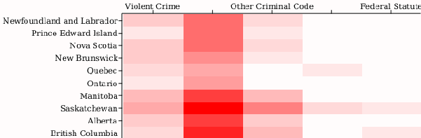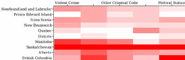 Statistics:-HeatMapCanadaCrime1..10,..,color=white..red,range=all,size=900,300
