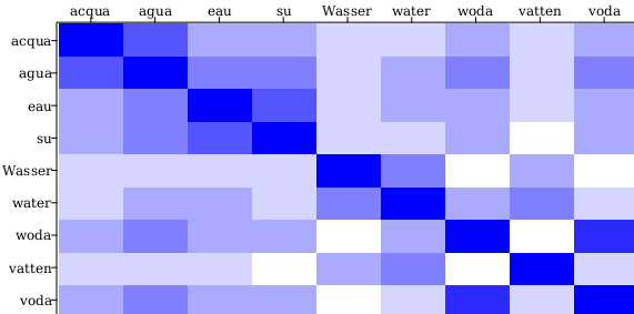 Compare the similarity of words for "water" in several languages using the Levenshtein distance.
