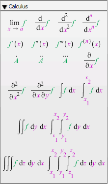 Maple has over 1000 palette symbols within more than 20 palettes.  You can use Maple's Expression or Calculus palettes to enter common mathematics expressions.  These palettes contains fill-in-the-blank templates for common operations.