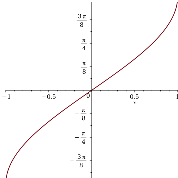plotarcsinx,x=1..1,tickmarks=decimalticks,piticks
