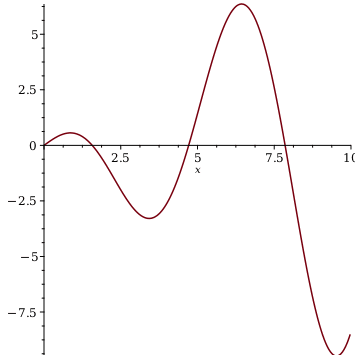 plotxcosx,x=0..10,axis=tickmarks=5,subticks=3