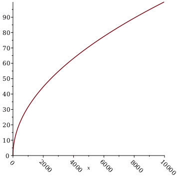 plotsqrtx,x=0..10000,axis1=tickmarks=rotation=π4