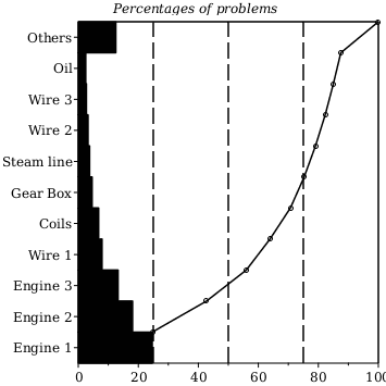 paretoFdata_norm,tags=Lab,misc=Others,title=`Percentages of problems`
