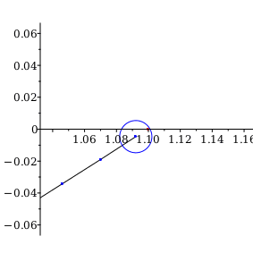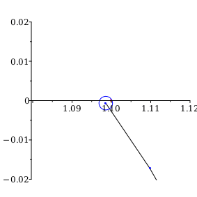 Zoom closer to the evaluation point 1.1, extending 1/50 to the left and right of 1.1