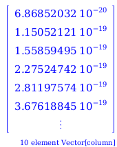 for n from 1 by 1 to 10 do      freqnevalfConstantcdataPbn,11e−9;      KEndataPbn,21.6021740888010171ⅇ-19 ;   end do:   freq;  KE;