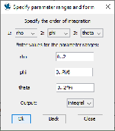 Use spherical coordinates to integrate the function f=1 over R, the region bounded below by the cone φ=π/6 and above by the sphere ρ=2.