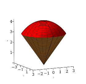 Use an iterated triple integral to obtain the volume of R, the region in the upper half-plane that is above the cone z2=x2+y2 but below the sphere x2+y2+z2=18. (Use spherical coordinates.)
