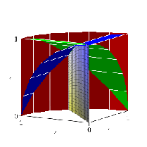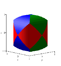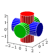 Use an iterated triple integral to obtain the volume of R, the region common to the three cylinders x2+y2=1, x2+z2=1, y2+z2=1.