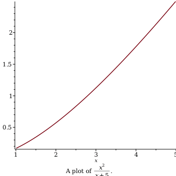 plotx2x+5,x=1..5,caption=typesetA plot of ,x2x+5,.
