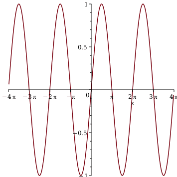 plotsinx,x=4π..4π,tickmarks=spacingπ,default