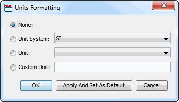 The new Units Formatting dialog makes it possible to apply formatting to units. To open the Units Formatting dialog, either go to the Format menu and choose Units Formatting or simply right-click on the output of an expression and then choose Units Formatting.