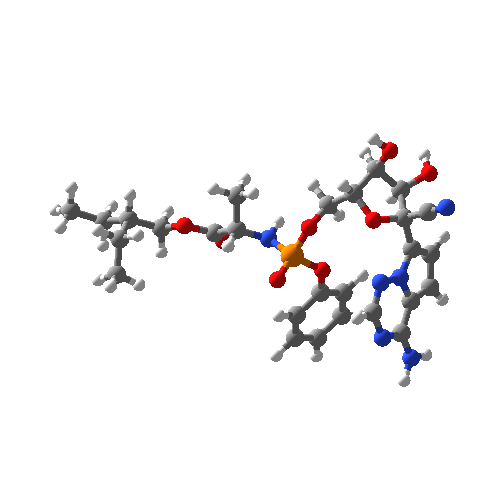 Remdesivir: Remdesivir is a carboxylic ester resulting from the formal condensation of the carboxy group of N-[(S)-{[(2R,3S,4R,5R)-5-(4-aminopyrrolo[2,1-f][1,2,4]triazin-7-yl)-5-cyano-3,4-dihydroxytetrahydrofuran-2-yl]methoxy}(phenoxy)phosphoryl]-L-alanine with the hydroxy group of 2-ethylbutan-1-ol. A broad-spectrum antiviral prodrug with potent in vitro antiviral activity against a diverse panel of RNA viruses such as Ebola virus, MERS-CoV and SARS-CoV. It is currently in Phase III clinical trials for the treatment of Covid-19 in adults. It has a role as an antiviral drug, a prodrug and an anticoronaviral agent. It is a carboxylic ester, a pyrrolotriazine, a nitrile, a phosphoramidate ester, a C-nucleoside and an aromatic amine. It derives from a GS-441524. -ChEBI
