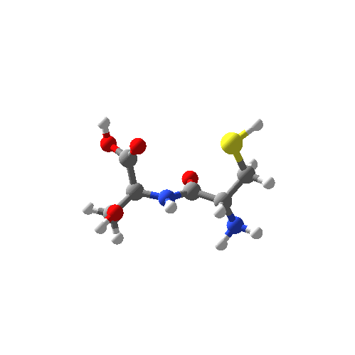 In the QCT 2021 we implement a new method for the ground and excited states of molecules.  The Schrödinger equation, developed by Erwin Schrödinger in 1925, is the key equation for solving quantum systems in non-relativistic physics.  However, its exact solution scales exponentially with the number of electrons in the quantum system.  To deal with this inefficiency, we solve a projection (or contraction) of the Schrödinger equation onto the space of only two electrons, known as a contracted Schrödinger equation.  This contraction is especially useful for improving computational efficiency for strongly correlated molecules−molecules that deviate significantly from the mean-field (Hartree-Fock) picture of one electron in the field of the remaining electrons−for which many standard methods are often inaccurate.   Let us consider the peptide of the two amino acids L-cysteine and L-serine whose geometry we can import with the MolecularGeometry command