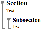 By default, sections in the worksheet are delimited with an arrow beside the section heading and a line indicating the section boundary.