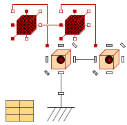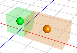 This is the simple example of visualization component model using Cuboid Vis. You must connect heat port Tin to port of Heat Capacitor or port_center of each Node component. Then the following visualized geometry is displayed in the 3-D Playback Window.