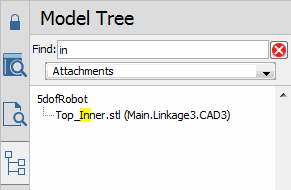 The model tree automatically updates to show the attachments that contain your search term. Matches are highlighted in yellow.