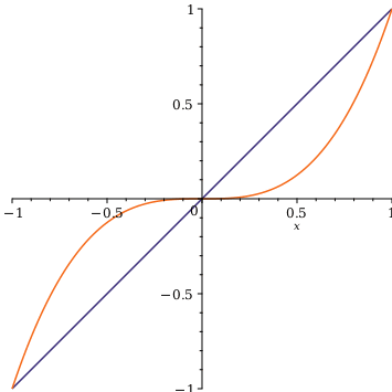 plotx,x3,x=1..1,color=Turbo 10,Turbo 200